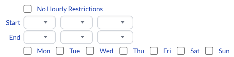 Un-selecting this option will immediately refresh the screen with additional hourly and day option fields.