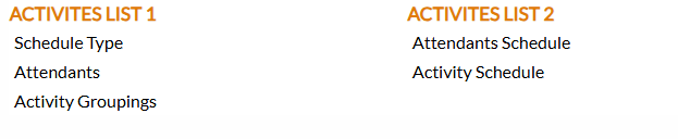 Note: BEFORE the scheduling of any activities can be completed, the attendant schedule (the hours when your employees are working) must be completed. This ensures Skyware Systems knows what attendants are available for scheduling during the selected time period when you select to schedule an activity. The activities assigned to the Attendant on the Attendant Configuration screen will help ensure that only your attendant's qualified to perform the desired activity are displayed from those listed as available on the attendant schedule for the selected activity.