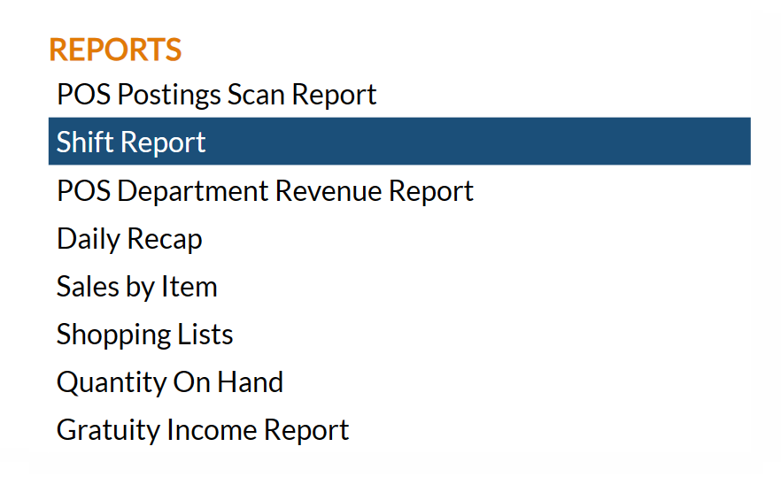 Skyware's Point of Sale software provides access to our features used to create and update checks for the food and beverage service areas and retail areas of your Property, as well as generating the necessary reports. This module seamlessly integrates with the Property Management Software. The POS Shift Report is part of this module. If your Property does not currently have our Point of Sale Module and you are interested in adding it, please contact us at Sales@SkywareSystems.com.